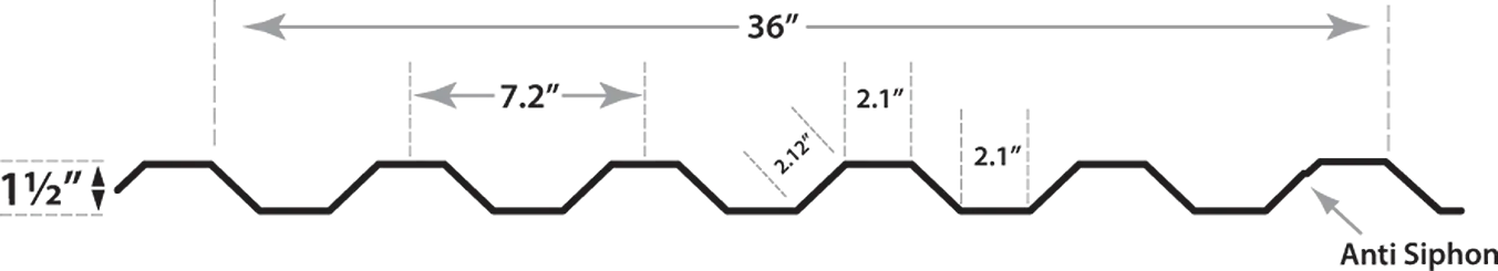 The 7.2″ Box Rib is a heavy-duty panel that can be used for roofing or siding, including a vertical or horizontal wall application. It has also been used effectively as a wainscoting or interior accent.