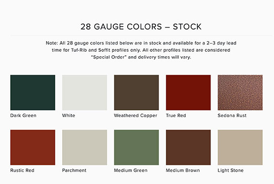 Visit our online color chart to see more details about lead times and panel profile availability.
